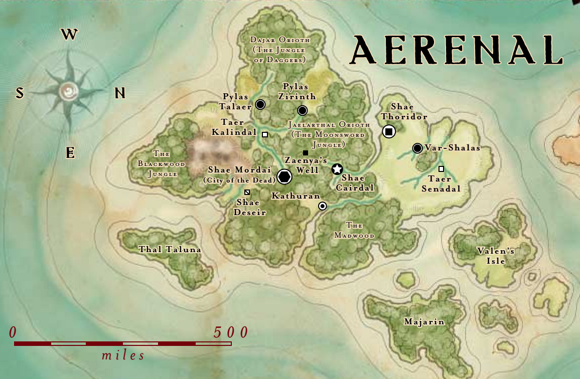 - The subcontinent of Aerenal. n.b. the compass rose; this map is rotated such that North is to the right. Compare with the map of Eberron below to get a sense of its correct orientation.